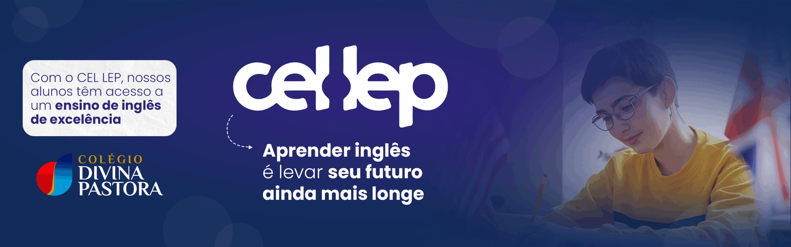 O Colégio Divina Pastora oferece uma formação ainda mais completa com o CEL LEP — referência nacional em ensino de idiomas.